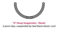 エラスティックゴム紐にてアセチル製クリップを2点吊りしています。装着や取り外す場合には、いちいちサスペンションとサスペンションブラケットを完全に取り外してから行います。いわゆるスライド式以前のサスペンションです。