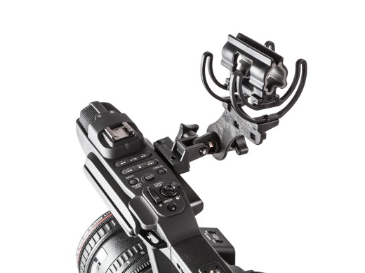 InVision Softie Lyre Mount MHRはカムコーダーにネジ止めされている既存のマイクホルダーを外して、代わりに取付けられるアダプターです。